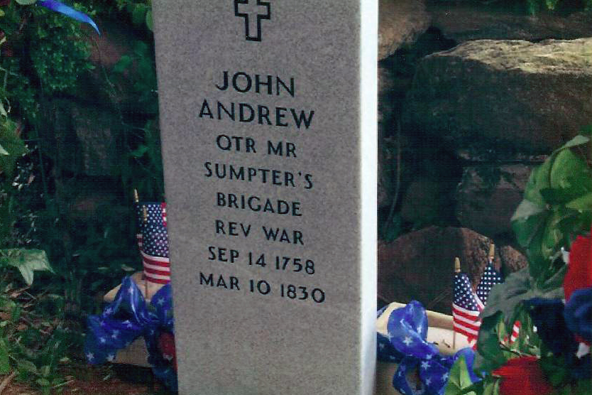 John Andrew fought in the Battle of Savannah later that year, and after the city’s fall, he became a Georgia refugee and fled to South Carolina to continue the fight. There he fought under Thomas Sumter as a Quartermaster. When he returned home, he found that his crops had been burned twice and his furniture destroyed.